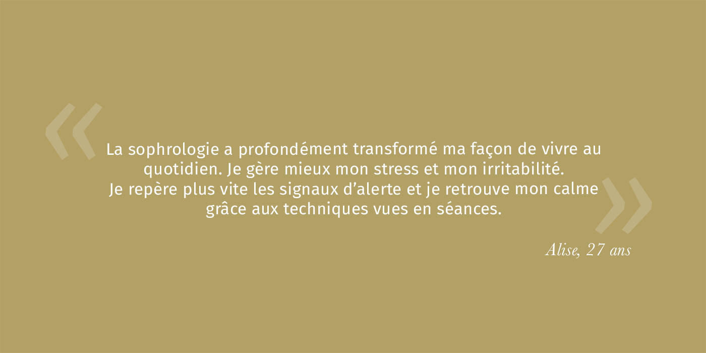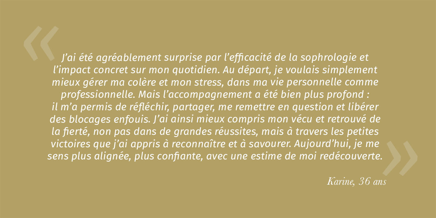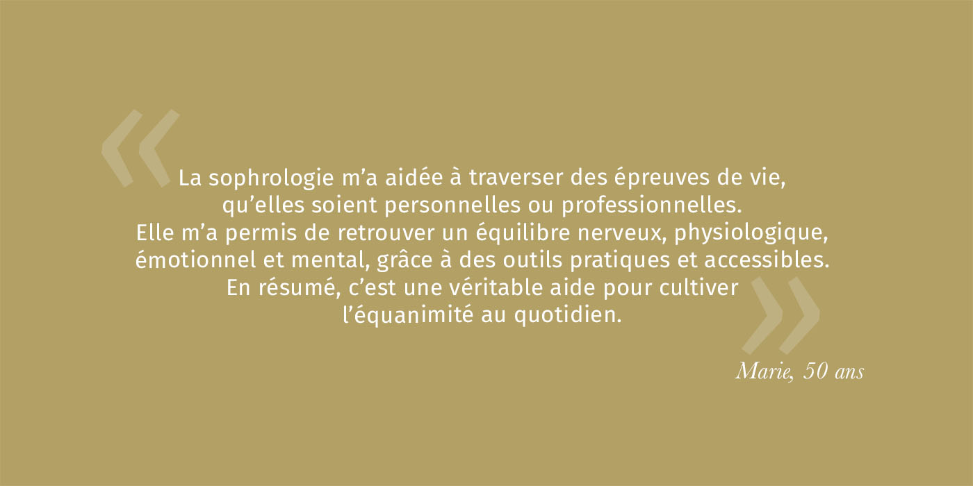 Aujourd’hui, la sophrologie est devenue le cœur de ma pratique :